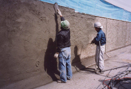 またマスターエマコS992は吹付けだけでなく、こて塗り工法でも5〜20oの断面補修を容易に施工することができます。